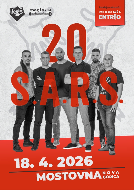 Legendarna skupina S.A.R.S., ki letos praznuje 20. let delovanja se po dolgem času spet vrača v Novo Gorico! V soboto, 18. 4. 2026, bodo s svojo energijo in največjimi hiti zatresli oder na Mostovni. Pridite skupaj z njimi praznovati njihovo 20-ko!