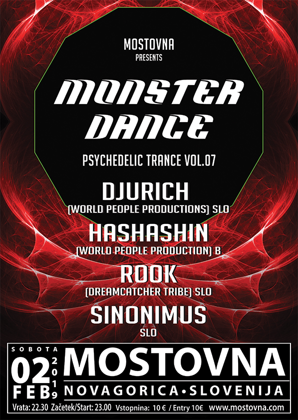 Po dveh mesecih se Monster Dance vrača na Mostovno. Na sedmi večer Monster Dancea se bo predstavil belgijski producent, Hashashin, ki nastopa pod okriljem francoskega producenta World People Production.